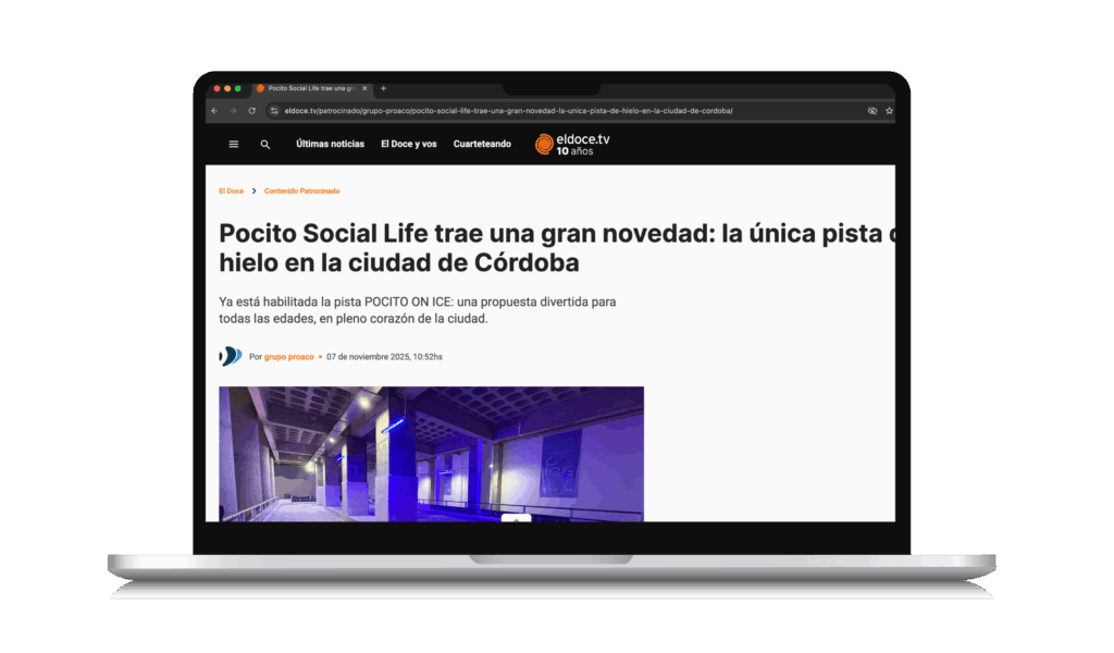 Comunicar el lanzamiento de POCITO ON ICE, la única pista de hielo en Córdoba, dentro de Pocito Social Life, y anticipar la pista permanente que estará en OperaFun, en Villa Carlos Paz. Posicionar esta actividad como una nueva experiencia urbana, cercana, práctica y para todo público por tiempo limitado. Instalar notoriedad, traccionar visitas y ventas de tickets, y sumar valor al ecosistema comercial.